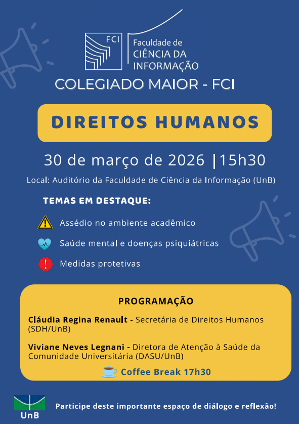 Convidamos toda a comunidade acadêmica para participar do Colegiado Maior da FCI, que terá como tema Direitos Humanos.