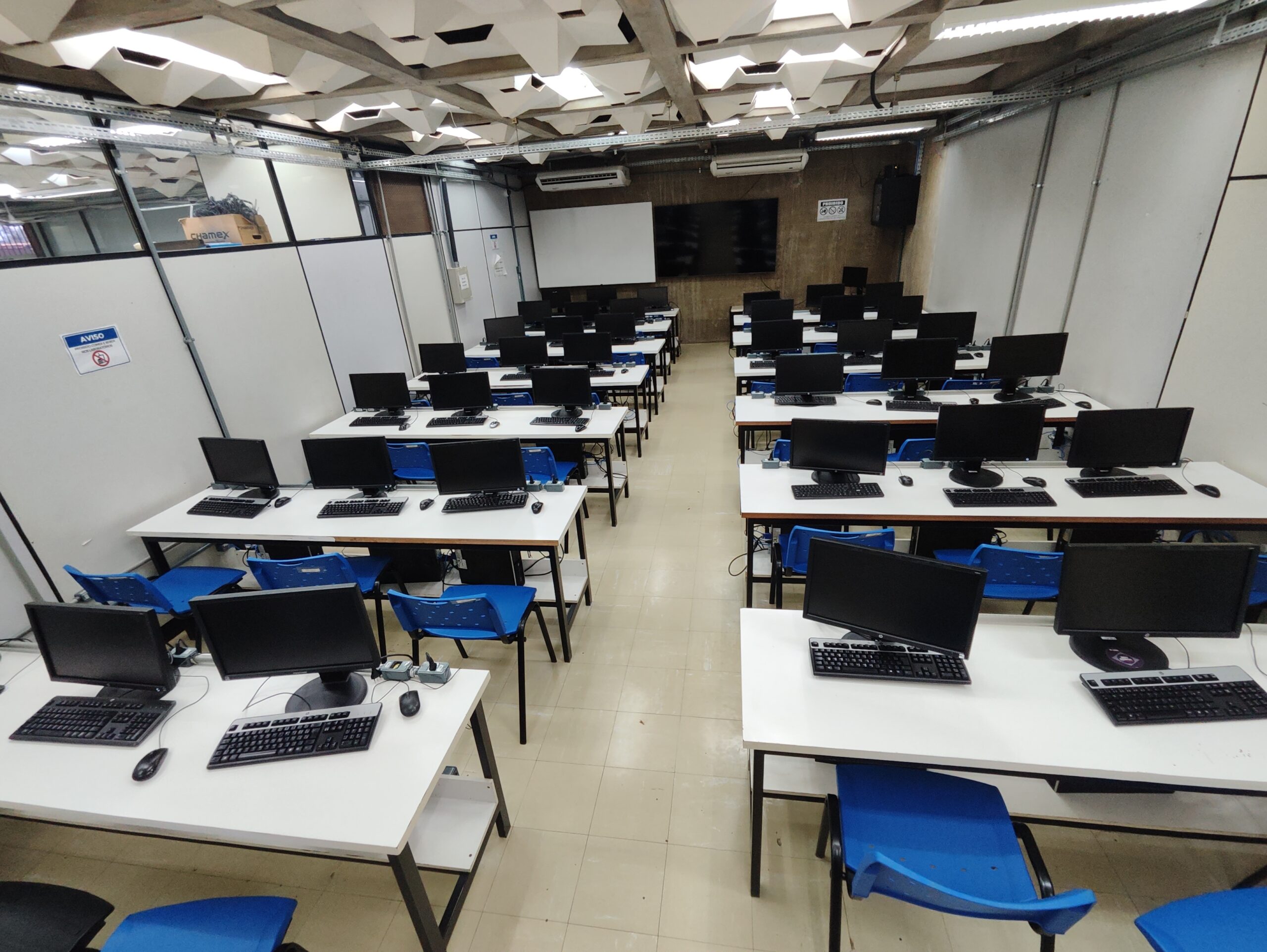 Os laboratórios LICI 1 e LICI 2 são espaços modernos voltados ao ensino prático em tecnologia e informática. Cada laboratório possui capacidade para 40 alunos e está equipado com 40 computadores e monitores individuais, garantindo conforto e eficiência no aprendizado. Ambos contam ainda com televisor de 85 polegadas e desktop de apoio para o professor, oferecendo recursos visuais ideais para aulas interativas e dinâmicas.